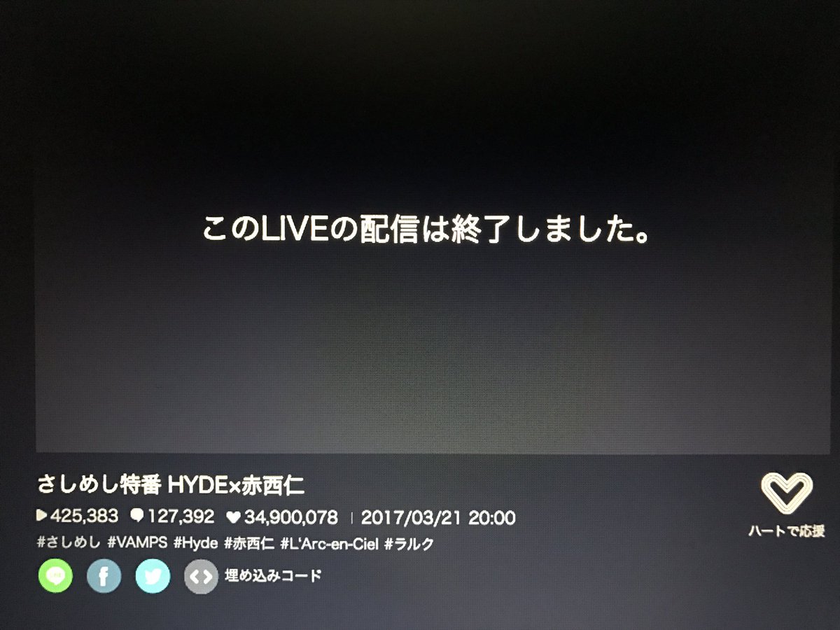 #赤西仁 #HYDE #さしめし #LINELIVE pic.twitter.com/6KMwnvJEM62017年3月22日 15:13