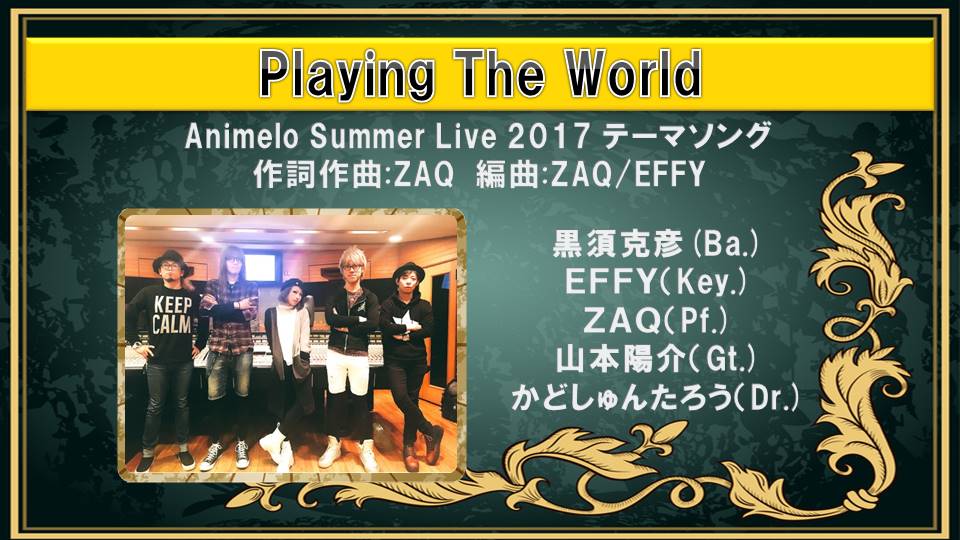 情報解禁です。Animelo Summer Live 2017のテーマソング「Playing The World」を、ZAQが作詞/作曲/共同編曲させて頂きました。「アニサマに立つのが1つの目標」だった私だからこそ書けた歌があります。楽しみにしていてください! #anisama
