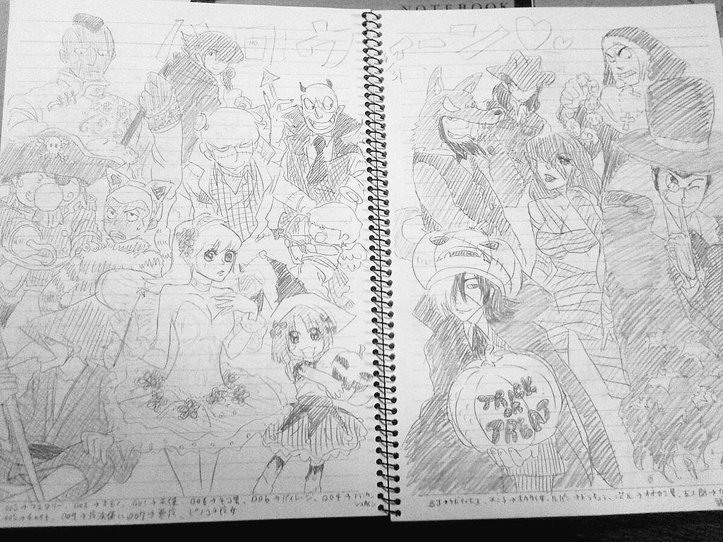 中学生から高校生まで描いてた日記の落書きページ。好きなものごっちゃにして描いてた。