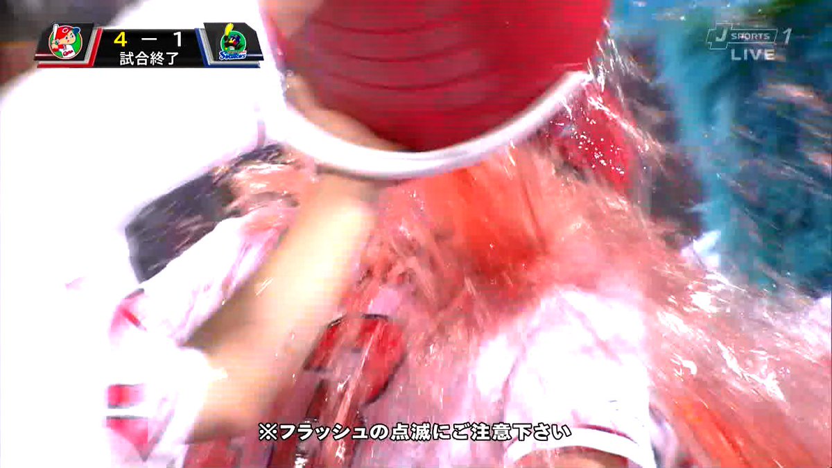 🌊鈴木誠也、初ヒーローインタビューの加藤拓也へ水かけ