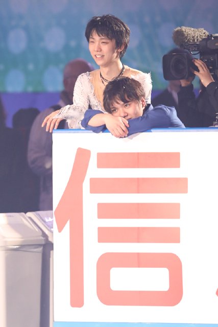 【 #国別対抗戦 エキシビション】 #村上佳菜子 の引退セレモニーを見守る #羽生結弦、 #宇野昌磨