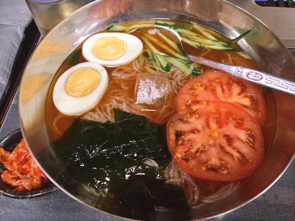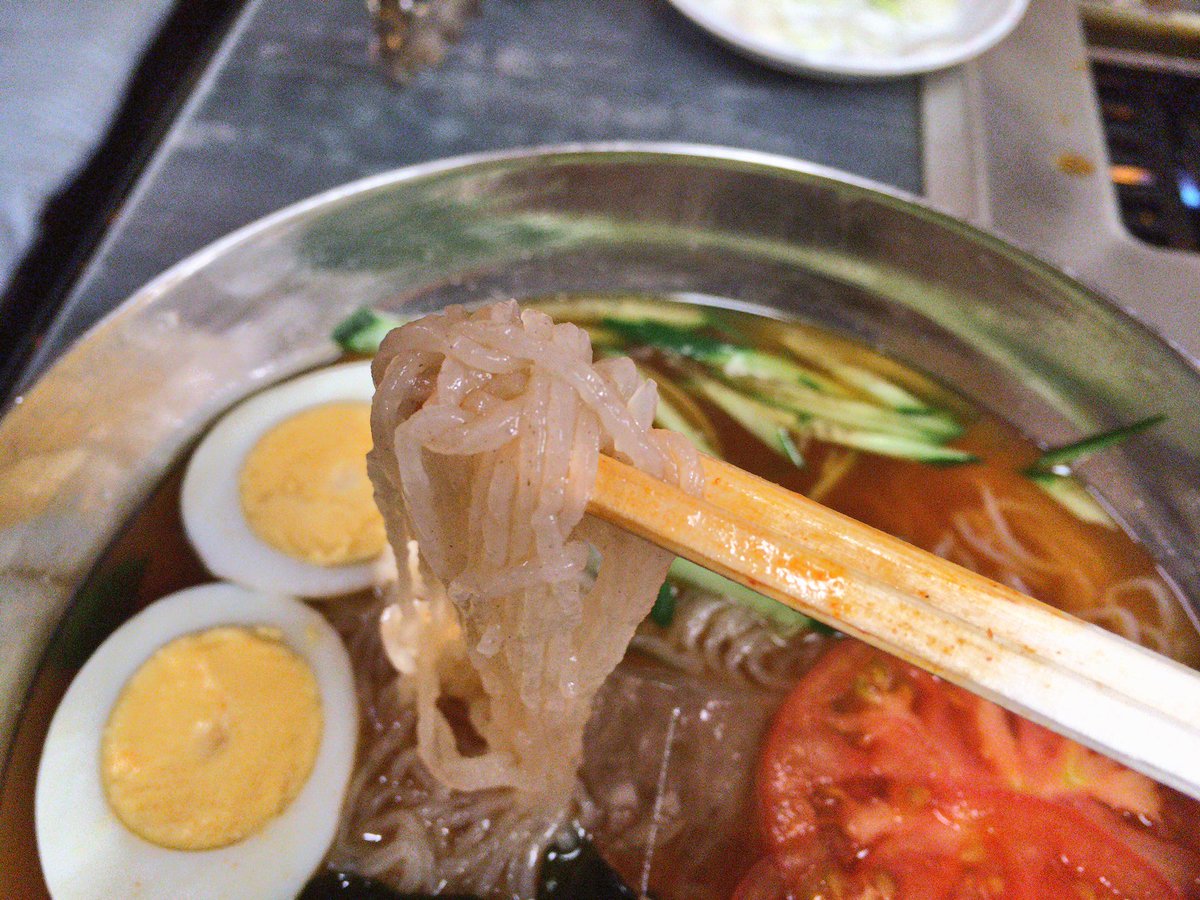 『冷麺しょうゆ味(810円)』はキムチが別添えで出てきますが、スープが最初からピリ辛です。麺がすごく細くてやわらかく、お腹に軽~くストンと落ちていきます。焼肉の締めにはぴったりですよ(´ω`) #孤独のグルメ pic.twitter.com/fnUykBeRn7
