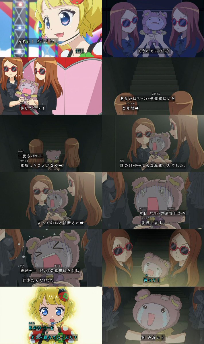 クマさんこれだけの苦労を経た上でマネージャー頑張ってたんだぞ…パパラ宿のプリパラがパラ宿と同じかは分からないけどプニコンも頑張らないとこうなるかもしれないんだぜ #pripara pic.twitter.com/KVhkcPqzcx