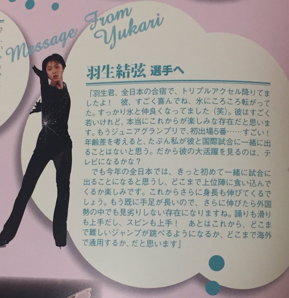 当時3Aを飛んでいた中野友加里さんからのエール!