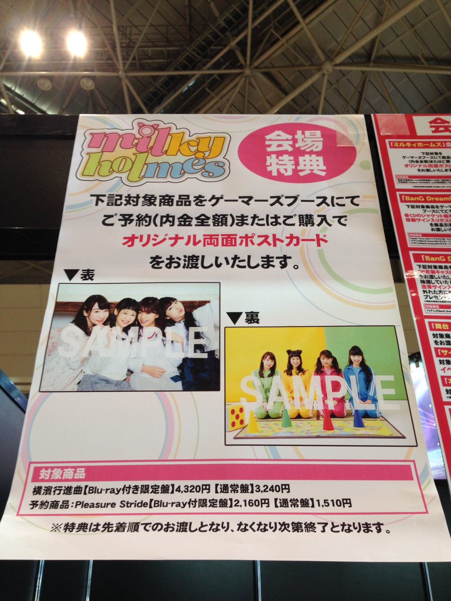 【10周年祭】大お楽しみコーナー内ゲーマーズ出張所ではCDなどを販売中。「横濱行進曲」購入、「Pleasure Stride」予約で特典が付きます! #milkyholmes #ブシロード10周年祭 pic.twitter.com/Rmmfm2yw8b