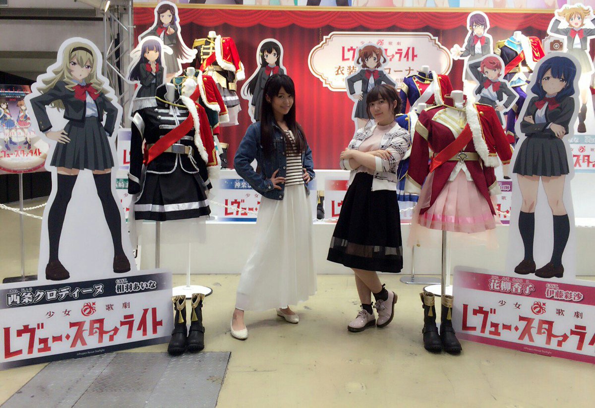 スタァライトブースに西條クロディーヌ役の相羽あいなさん、花柳香子役の伊藤彩沙さんが遊びに来てくれました!!キャラと同じポーズでパシャリ!!ありがとうございました!! #スタァライト #ブシロード10周年祭 pic.twitter.com/jzH1Vumn6w2017年5月6日 17:43