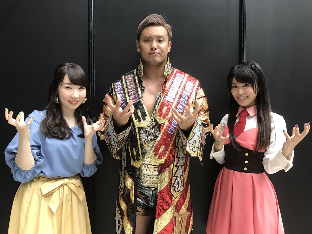 オカダさんとお写真撮って頂きました✨✨トライスリーのみんなと、ハイメフラワーズ?☺️笑笑