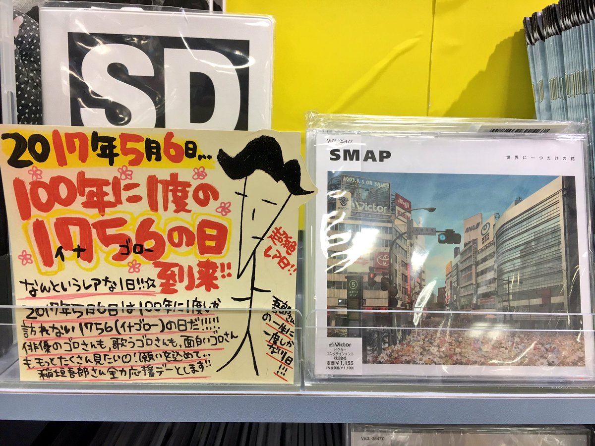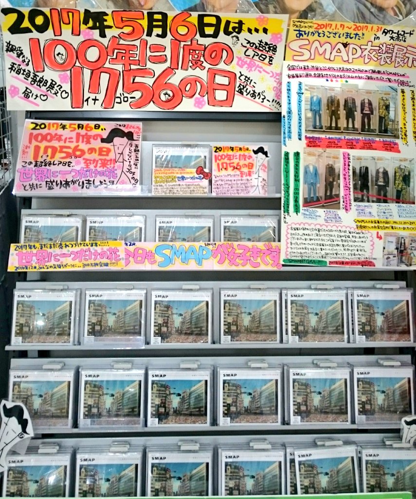 #100年に一度の1756の日 #世界に一つだけの花 #SMAP #タワレコ pic.twitter.com/5FS0HmSudZ2017年5月6日 15:08