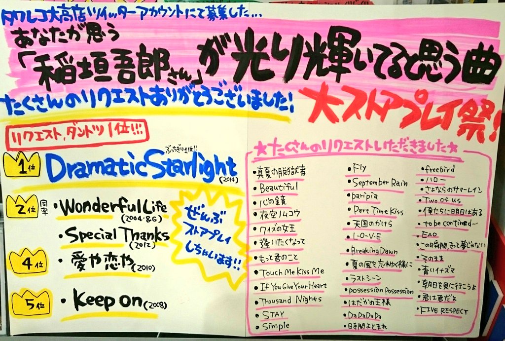 タワレコ大高さん、吾郎ちゃんの曲沢山かかってますよ😄