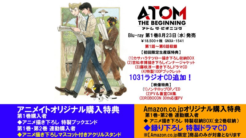 おかげさまでこちらのRTキャンペーンが1031RT達成しましたので「アトム ザ・ビギニング」Blu-ray第1巻の初回限定生産版特典に「ラジオCD」が追加されることが決定しました!第1巻は1話~6話収録です!