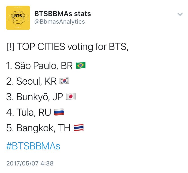 I vote @BTS_twt for #BTSBBMAs pic.twitter.com/EXvP6XYPYF2017年5月7日 17:24