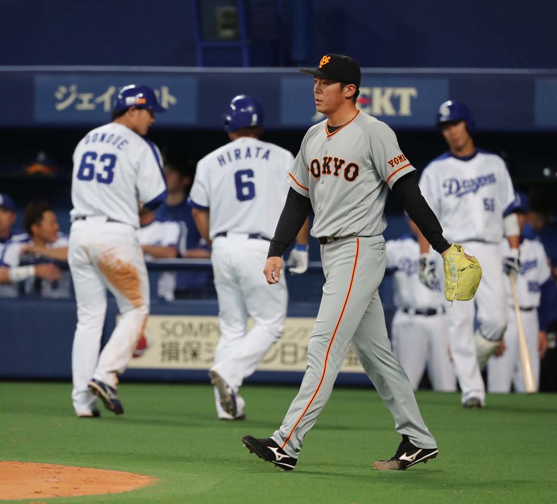 4回、先発の #内海哲也 投手は、中日・ビシエド選手に追加点となるソロ本塁打を許す。さらに木下拓選手にも適時打を許し、この回2点を失う。