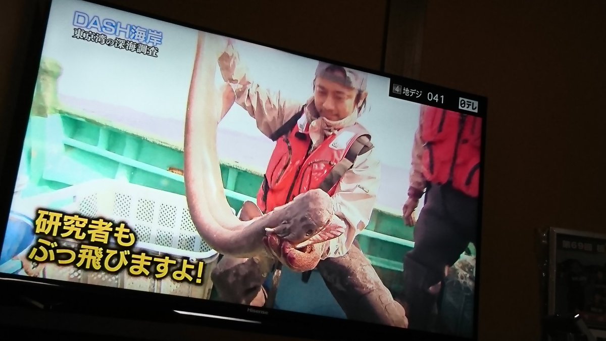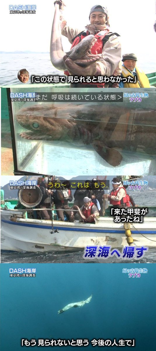 超レア生物「ラブカ」が釣り上げられたにも関わらず、特に煽るわけでもなく、いつも通りに淡々と番組を進行していくスタイル #鉄腕DASH #ntv