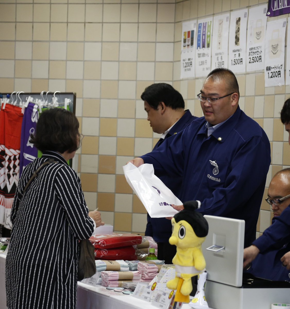 <二日目の様子>公式グッズ売店の店頭に立つ、振分親方。 #sumo pic.twitter.com/XwvplxoDJv