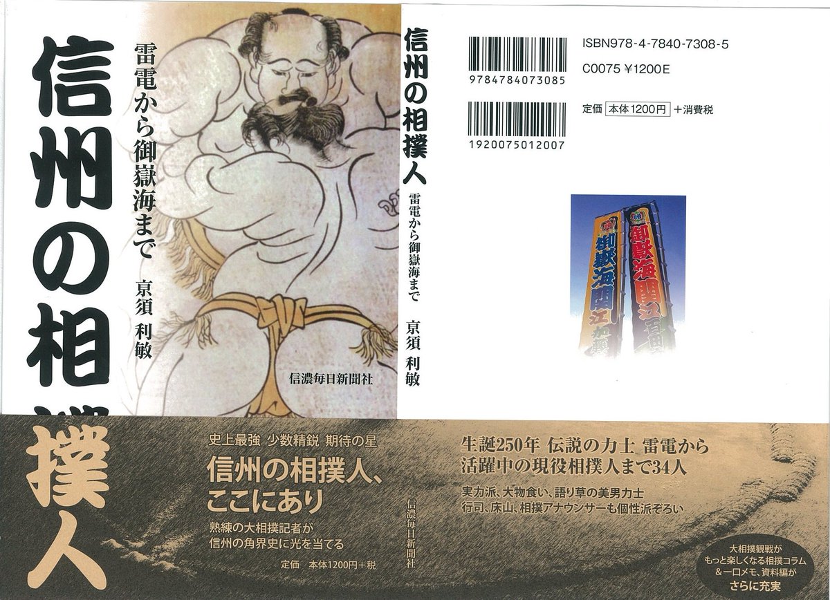 <近日発売>「雷電から御嶽海まで 信州の相撲人」江戸~昭和の幕内力士と現役力士、行司、床山、相撲名物アナウンサーまで34人の角界人を列挙。(亰須利敏 著、1296円、信濃毎日新聞社発行) #sumo pic.twitter.com/O9H2cnenAb
