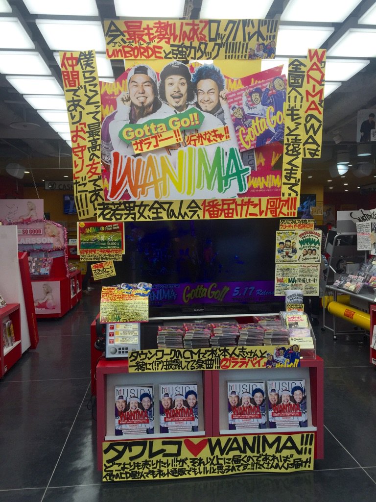今最も勢いのあるバンドWANIMAの3rdシングル「Gotta Go!!」本日発売!大きく!熱く!展開中!!(鮎) #WANIMA #ガラゴー #gottago pic.twitter.com/uLwsxvx1tG