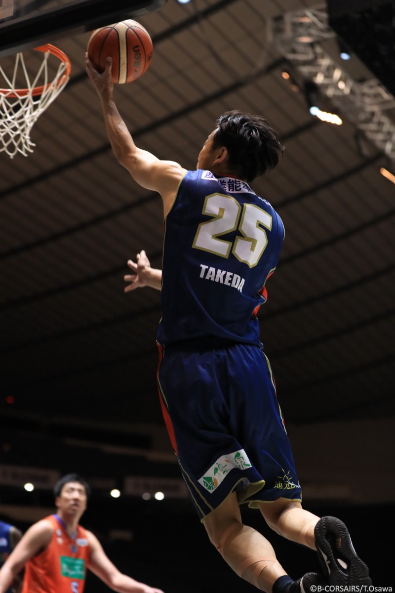 広島を相手に臨んだB1・B2入替戦で、竹田は12得点をマークしました。