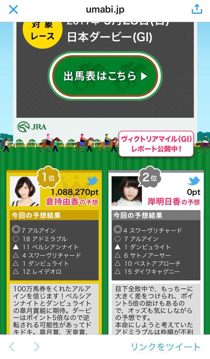 #日本ダービー #ダービー #ダービー予想 #競馬予想 pic.twitter.com/lE0ekL6pS22017年5月28日 15:14