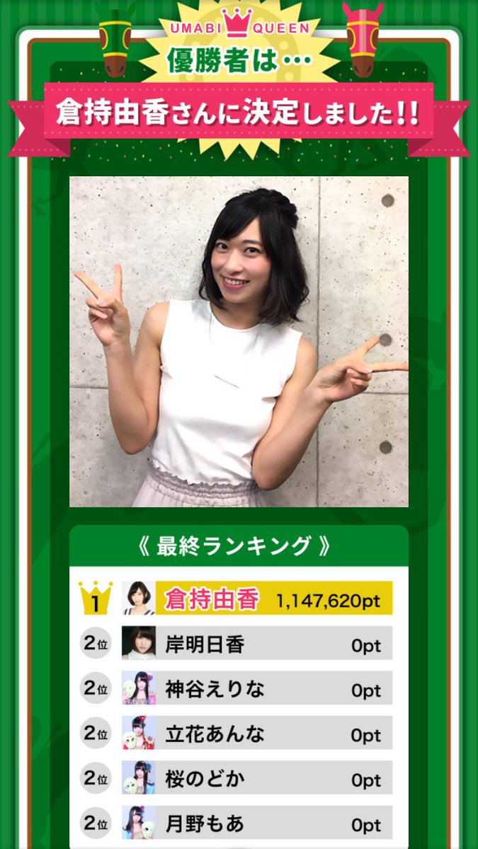 #うまび クイーン公式サイトが更新されました~~!!! #日本ダービー はポイント5倍なので最終的に1147620ポイント獲得でクイーンになりました!!!応援してくださった皆様ありがとうございます!モッチークイーン!!
