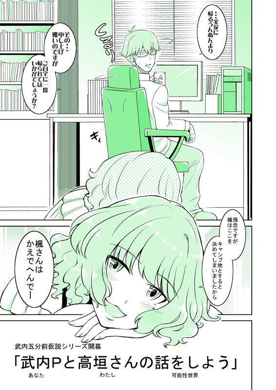 一枚絵が間に合いそうにないので、取り急ぎ高垣楓のウワサ2漫画をかえみずで描きました。初めての漫画なので見づらいとこもあると思いますが、よければ。そして楓さんおめでとう。 #高垣楓生誕祭 #高垣楓生誕祭2017 pic.twitter.com/Ib7bvjTk3b