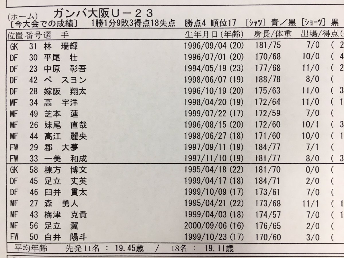 #ガンバ大阪 #GAMBAOSAKA #ガンバ大阪U23 pic.twitter.com/ImGpgvrBpQ2017年6月18日 19:59