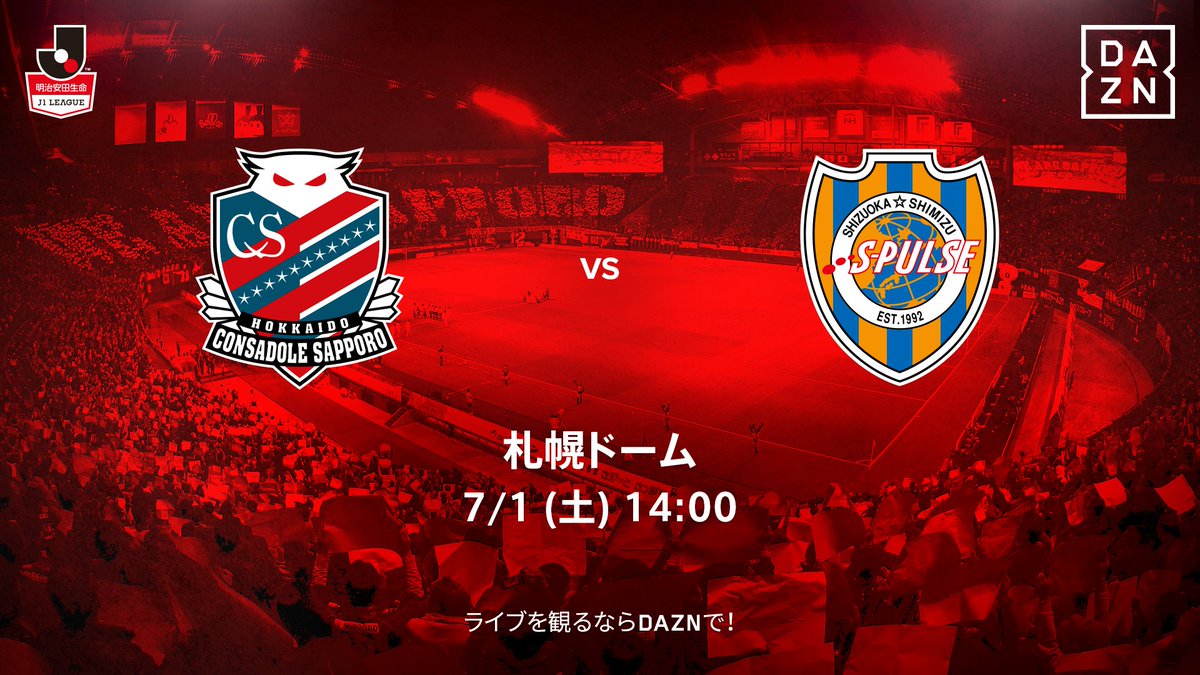 明治安田生命J1リーグ第17節、北海道コンサドーレ札幌vs清水エスパルス戦、キックオフまであと2時間!『ゴールはみんなのコールから』です!コンサドーレへの声援、よろしくお願いいたします。 #consadole #コンサドーレ #ゴールはみんなのコールから #DAZN pic.twitter.com/Kw7Yp5K1Dc