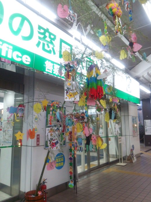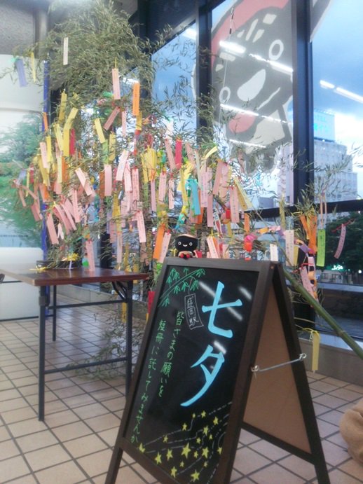 JR盛岡駅では七夕飾りが飾られています。そばっちも願いごとを書いてきたよ!