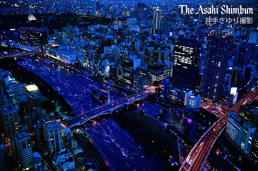 #七夕 の7日夜、大阪市中心部を流れる大川に、約1キロにわたって青い光の「 #天の川」が出現しました。青色LED入りのプラスチックの球約5万個が光の帯を作りだしました。(真) #平成OSAKA天の川伝説2017 pic.twitter.com/viFzvyxgrM2017年7月7日 23:33