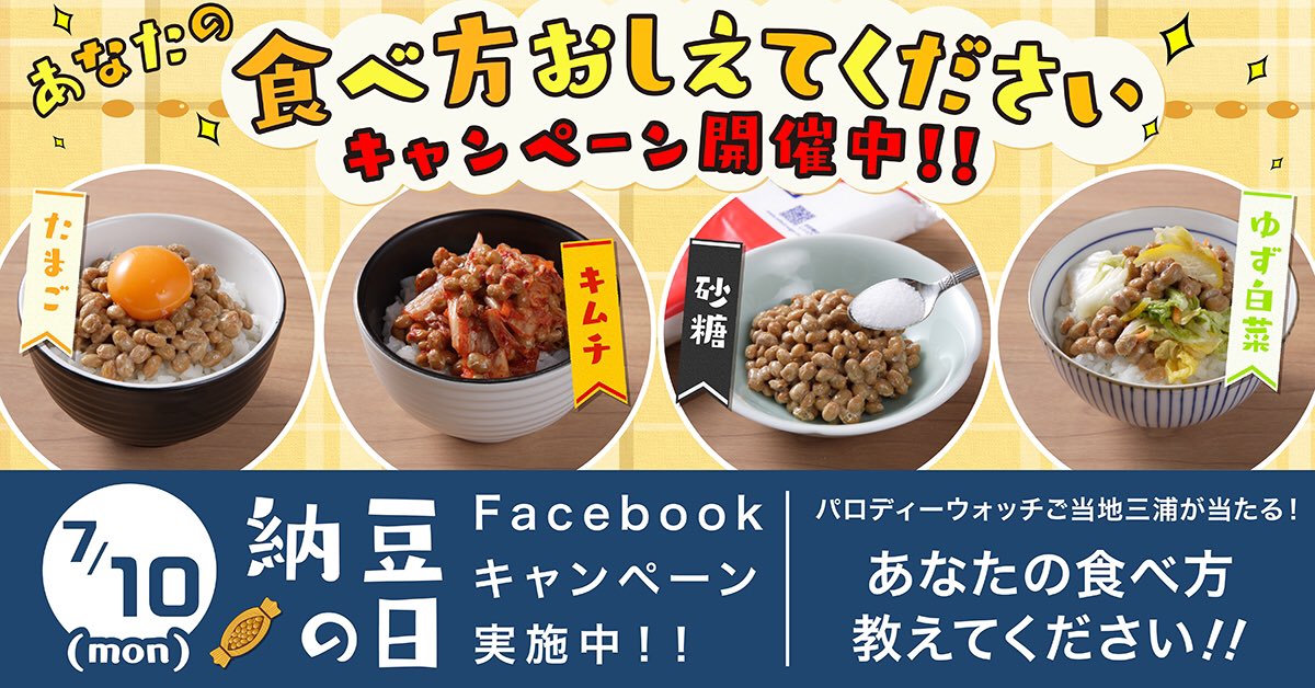 イトーヨーカドーFacebookキャンペーン実施中!いいね!&コメントいただいた中から1名様にパロディーウォッチ #ご当地三浦 茨城モデルをプレゼント🎁あなたの納豆の食べ方教えて下さいね♪