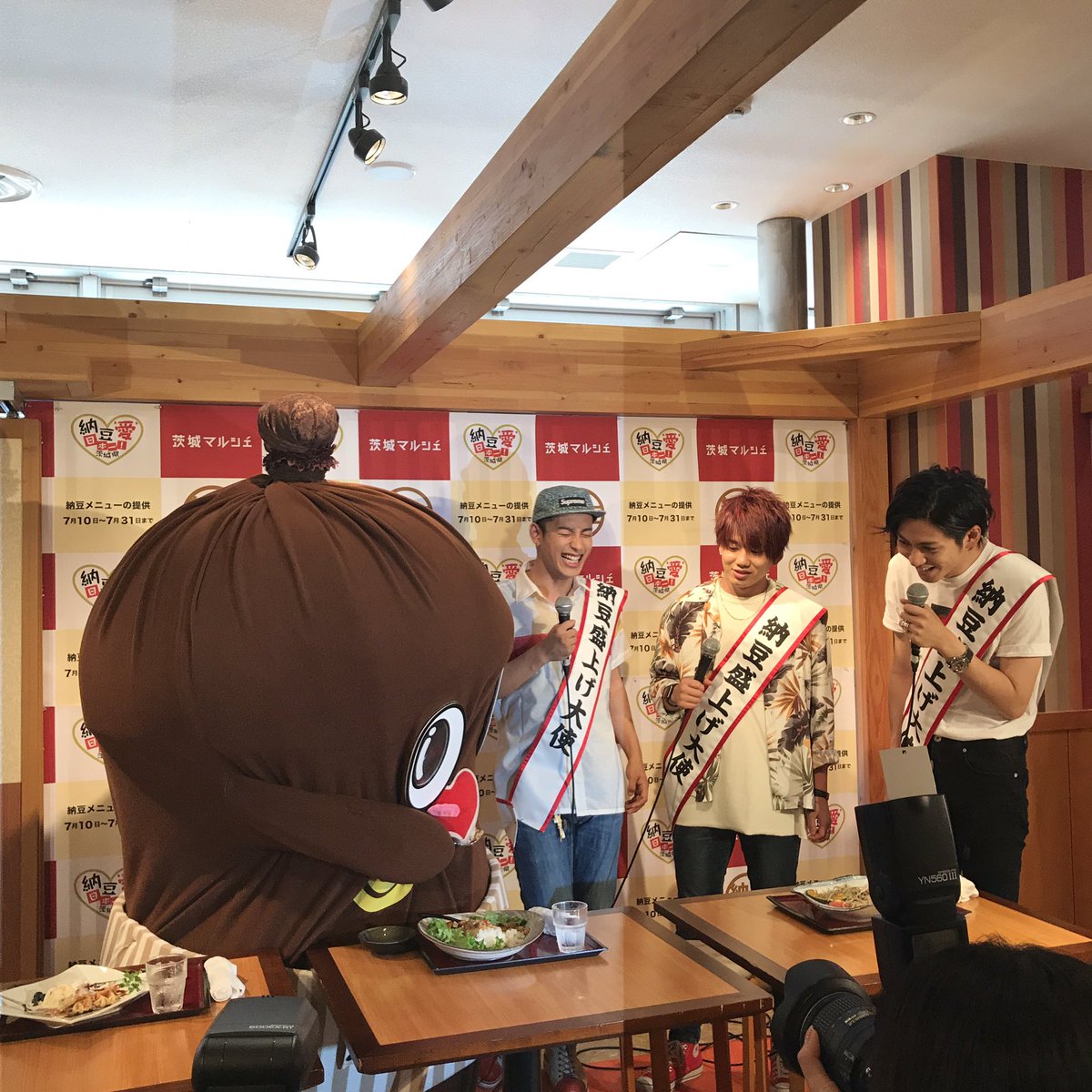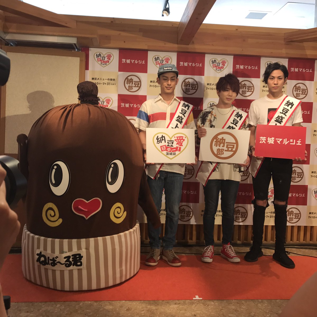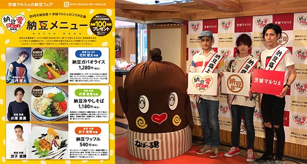 今日は納豆の日。有楽町の茨城マルシェで、本日17時から7月31日まで、Da-iCEの花村想太さん率いる"avex納豆部"考案の納豆メニューが。納豆の妖精ねば~る君も納豆ガパオを試食。おいしいねば~と絶賛。納豆パワーで暑さを乗り切ろう! #avex納豆部 #ねば~る君 #納豆の日 pic.twitter.com/AoDZYDizuX