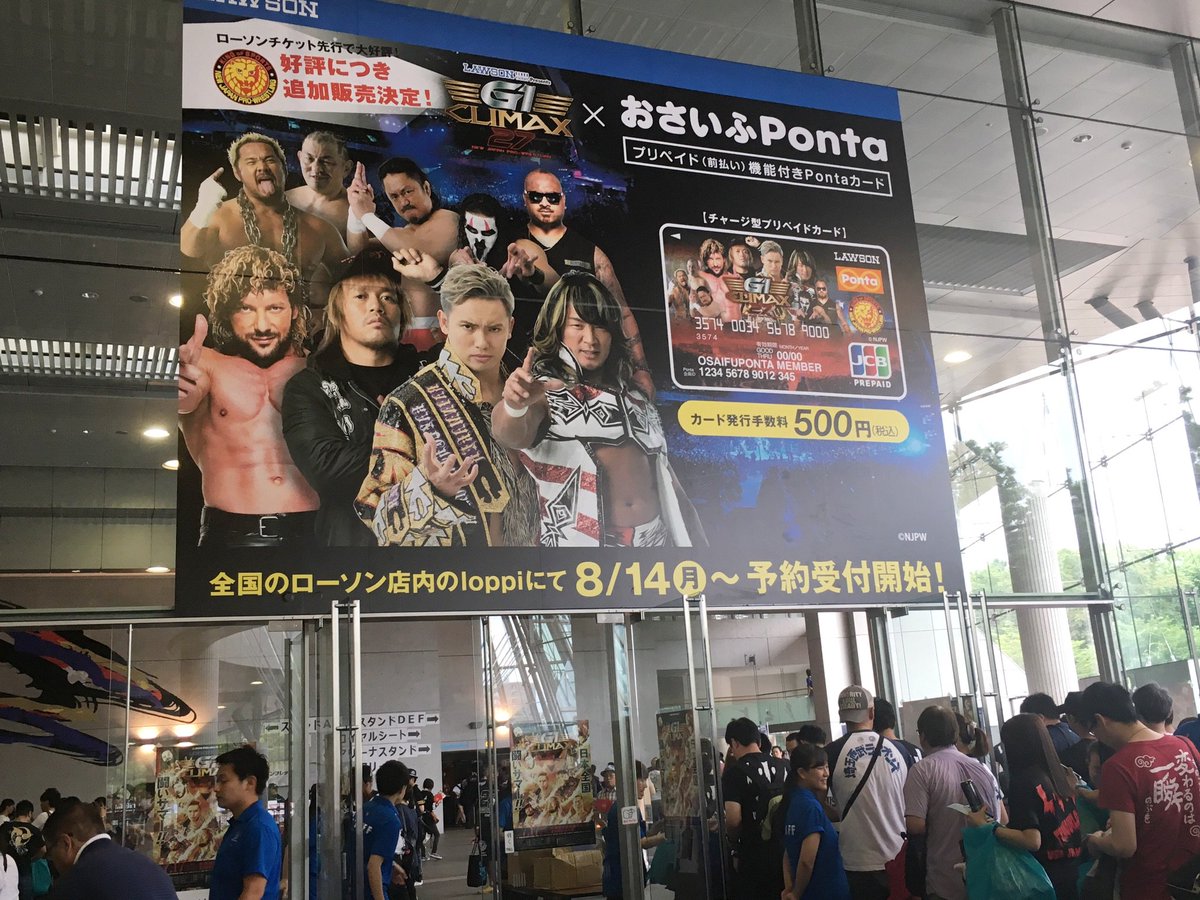 本日G1札幌大会場内ローソンチケット特設ブースにて「G1開催記念おさいふPontaカード」を引換中! 会場入って右側奥にローソンチケットブースがございますので、先行チケットご購入時のカード引換券を持参の上、おさいふPontaカードを必ずお受取り下さいませ。 #njpw #G127 pic.twitter.com/Gp476GfPaw