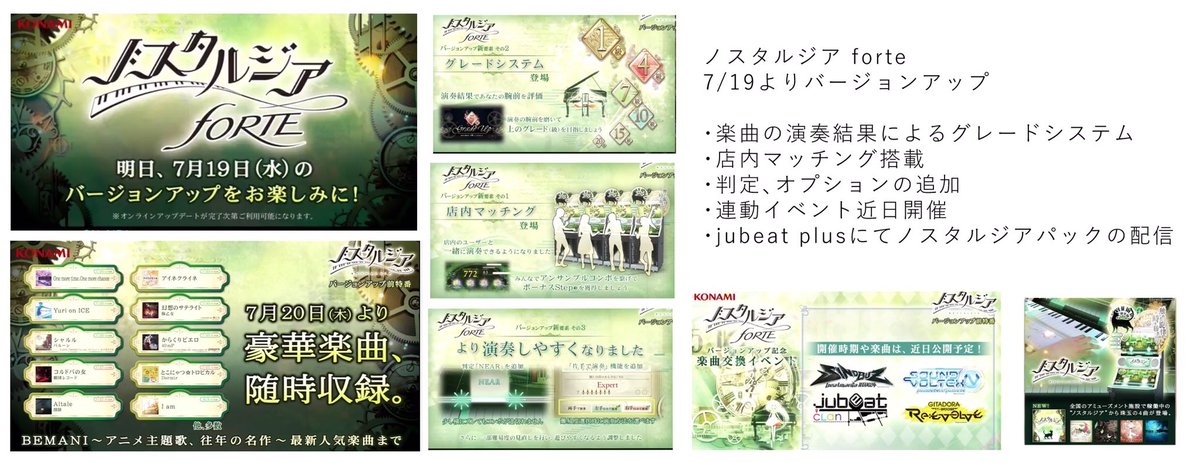 #ノスタルジア FORTEが本日より稼働。店舗内のユーザーと一緒に演奏できる店内マッチングや、腕前を評価するグレードシステム、さらに気持ちよく演奏できる新判定の追加など、新要素が満載。新たなノスタルジアがみなさまをお待ちしています。 eagate.573.jp/game/nostalgia… pic.twitter.com/ahWP1rirQb