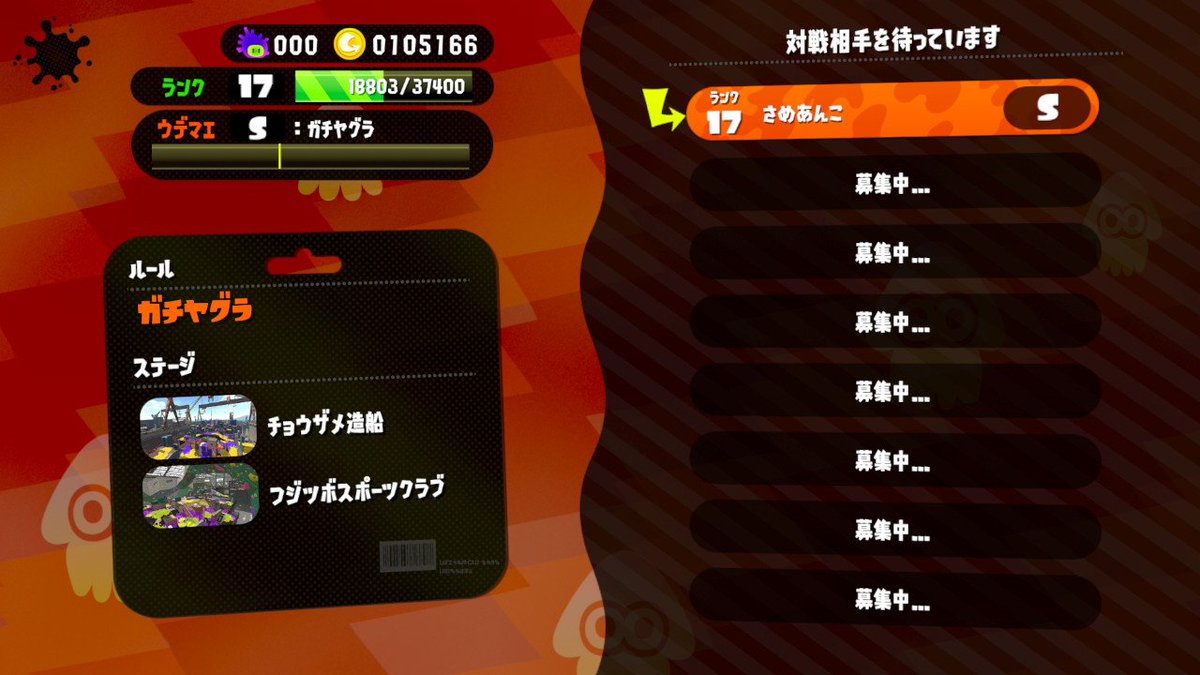 ウデマエSに到達しましたー!人いないのでマッチングはできません...! #Splatoon2 #スプラトゥーン2 #NintendoSwitch pic.twitter.com/pUTcBwo9Jb