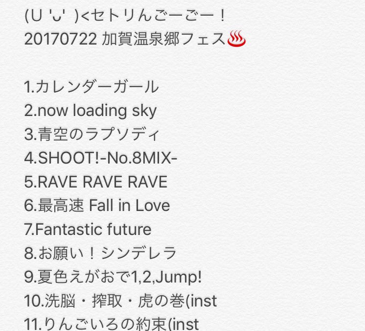 #セトリんごーごー pic.twitter.com/WNVx4wm7Ur2017年7月23日 14:16
