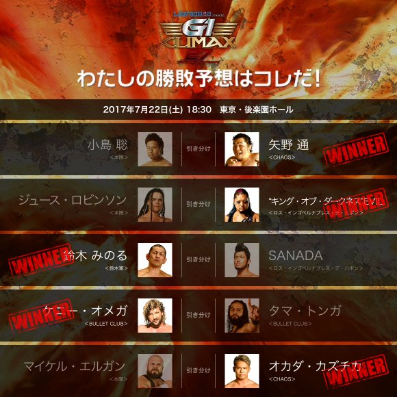 7月22日(土)『G1』後楽園大会の詳報をスマホサイト( sp.njpw.jp)で独占公開中!! #njpw #G127 pic.twitter.com/OBQn66C9Sw2017年7月22日 22:03