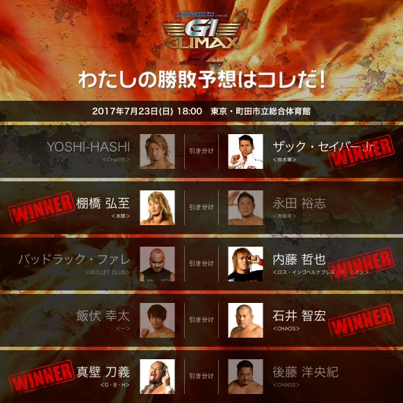 【G1 CLIMAX 27 】<7.23 町田> 勝敗予想! g1climax.jp/predict/locale… #njpw #g127 #g127予想 #g127_0723町田 #g127_町田_21221 pic.twitter.com/ZxIXL8Do21