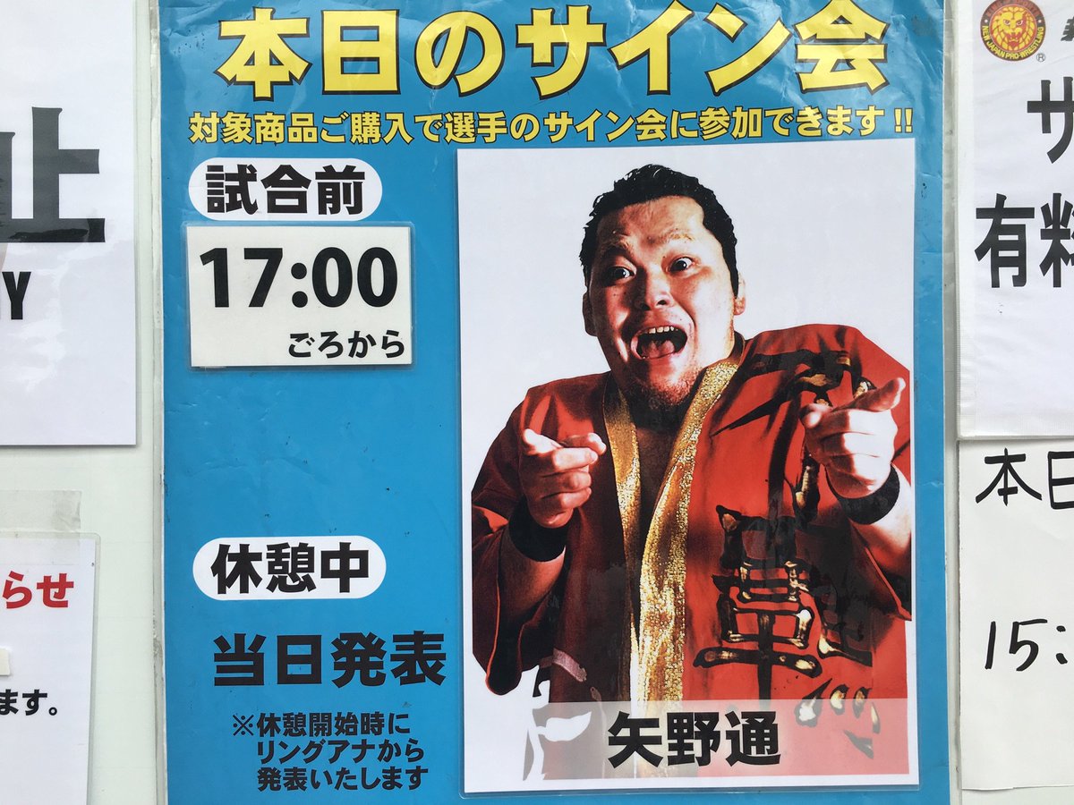 本日の試合前サイン会は矢野通選手! ただいま場外売店で、対象グッズを販売中です!