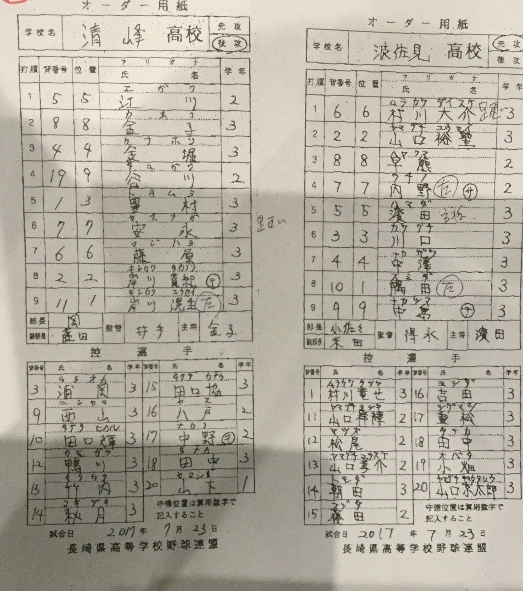 #長崎高校野球 #波佐見 #清峰 pic.twitter.com/zUL5HxG06G2017年7月23日 15:50