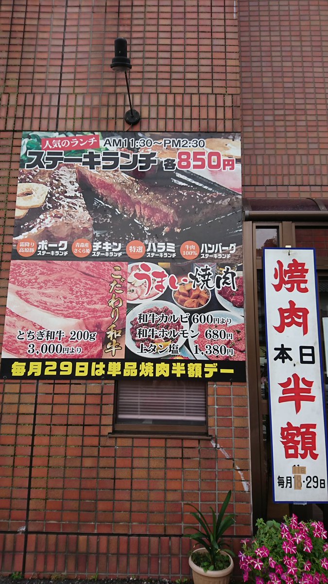本日29日は🍖肉の日でございます。ということで🍜でなく🐖ステーキランチでエネルギー源に。貧乏性なのか🍖食べると元気なる気がするわ。