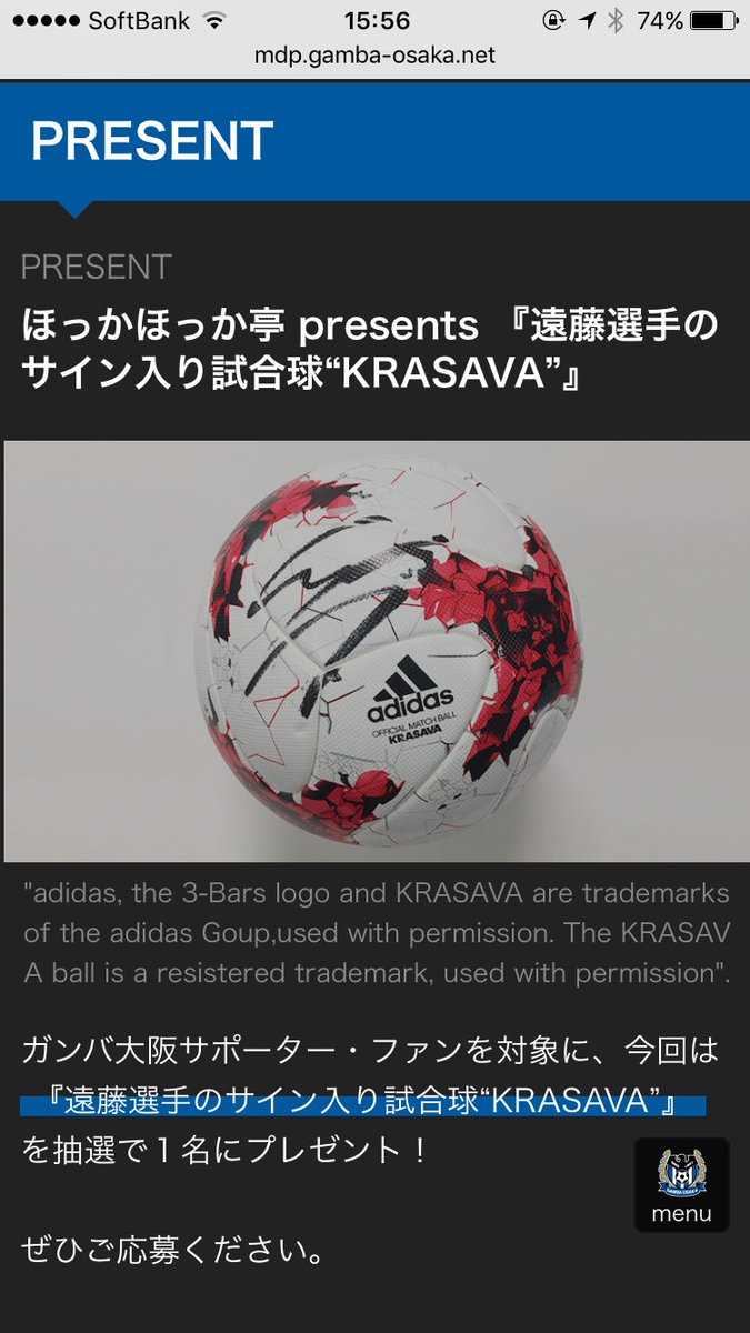 今日の公式試合球プレゼントは遠藤選手のサイン入りです!