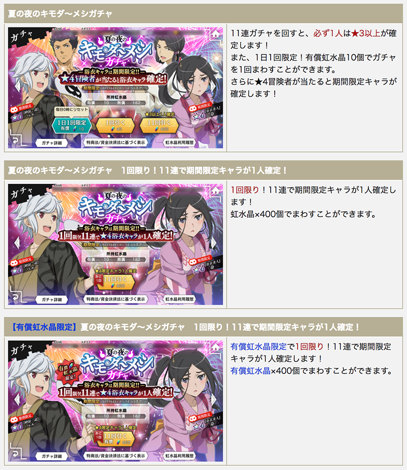 現在開催中の「夏の夜のキモダ~メシガチャ」には3種類のガチャがあります!
