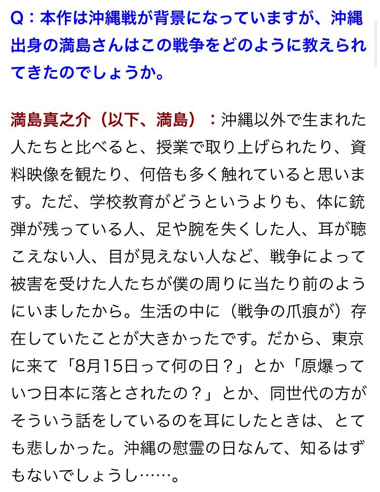 沖縄出身の満島真之介「生活の中に(戦争の爪痕が)存在していた」。『STAR SAND -星砂物語-』は戦時下に戦うことを拒否した日本兵とアメリカ兵、彼らを見つめる少女の交流を描いた物語です。 #終戦の日 #終戦記念日 cinematoday.jp/interview/A000… pic.twitter.com/7LZShHMf1y