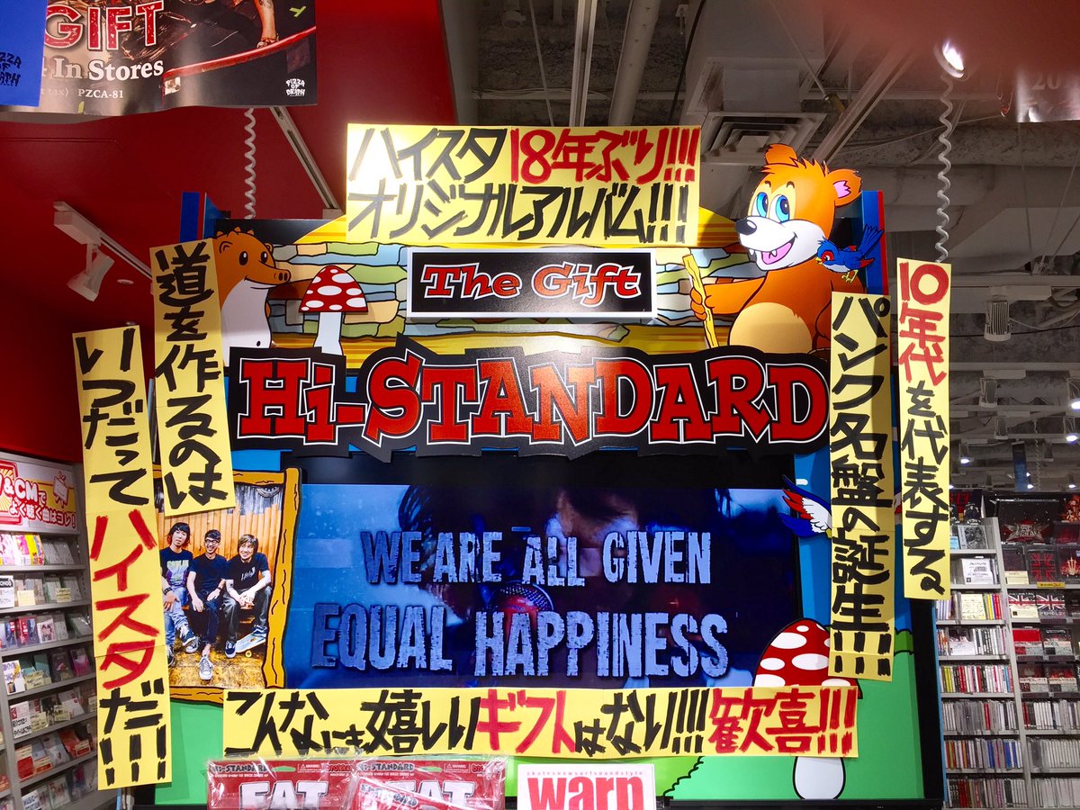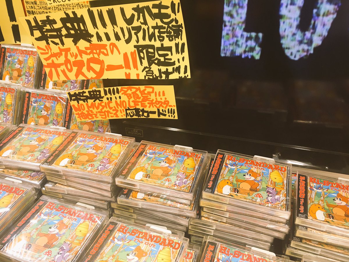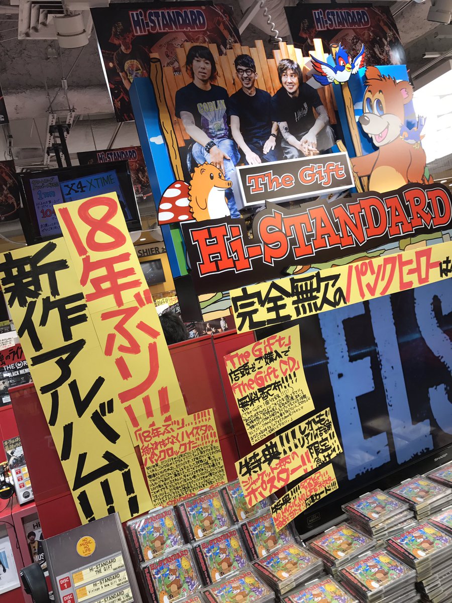 Hi-STANDARD、18年ぶりのオリジナルアルバム『The Gift』!!特典のポスター、そして購入者先着の無料配布CD、まだまだございますよ~🎁学校帰り、お仕事帰りに是非!(鮎) #HiSTANDARD #ハイスタ #TheGift #playthegift pic.twitter.com/1s6XaFDhWY