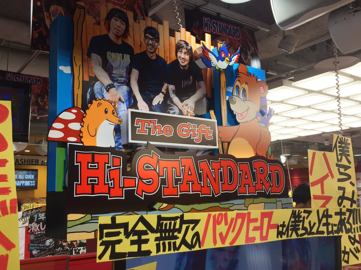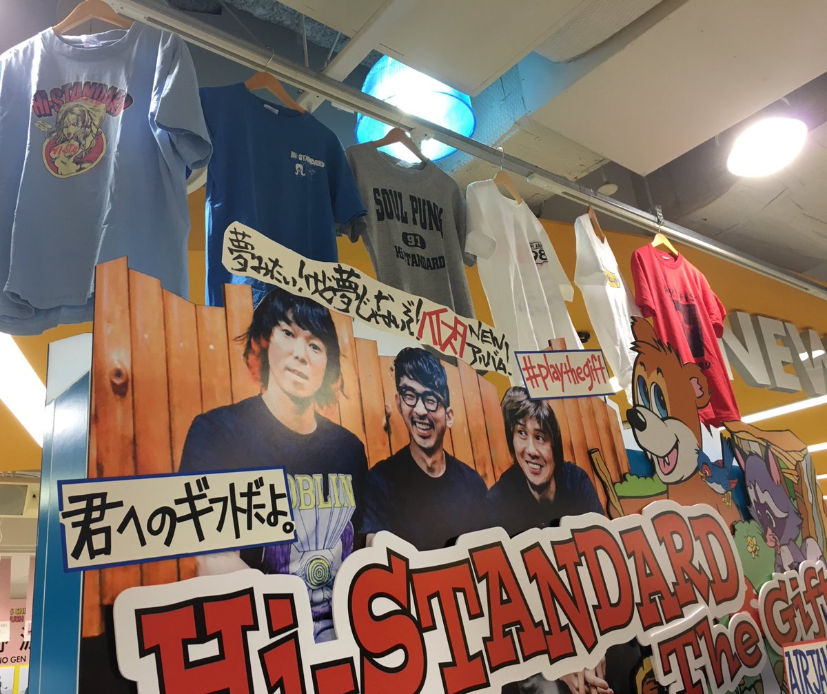 Hi-STANDARD、18年ぶりのオリジナルアルバム『The Gift』発売を記念して、ただいま1FではTシャツやNMNLポスターの展示、ハイスタ仕様のフォトフレームを設置中👊👊(丈) #histandard #ハイスタ #thegift pic.twitter.com/6661PbRozC