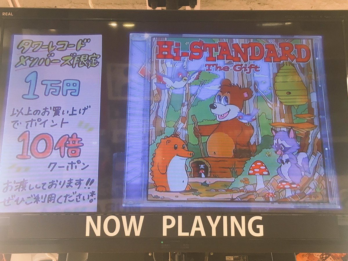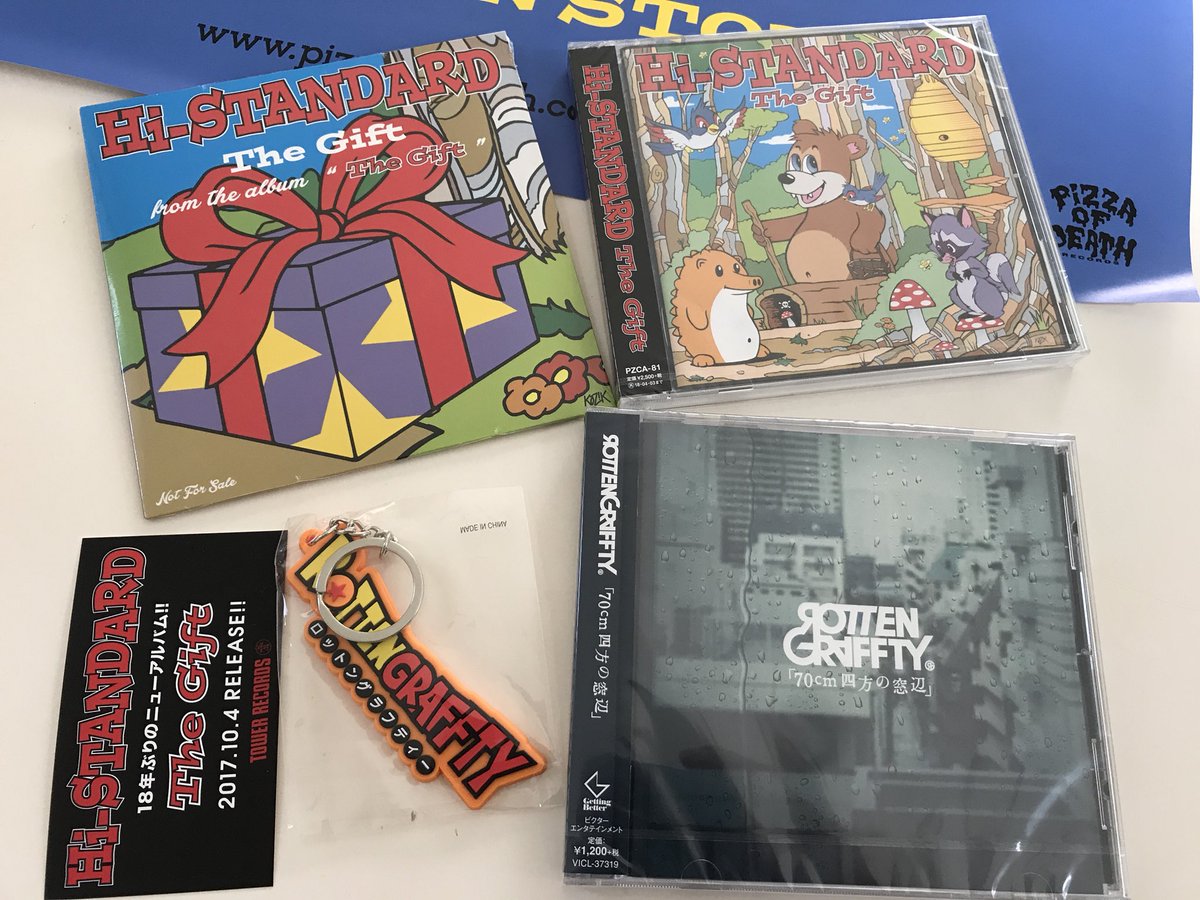 おはようございます! #ハイスタ のニューアルバム『The Gift』、お客様の「待ってました!」に後押しされ絶好調!本日も入り口ででっかく店からも後押し!10時から23時いつでもお待ちしております! #HiSTANDARD #GIFT #playthegift (鮎) pic.twitter.com/d29NpSSb4H