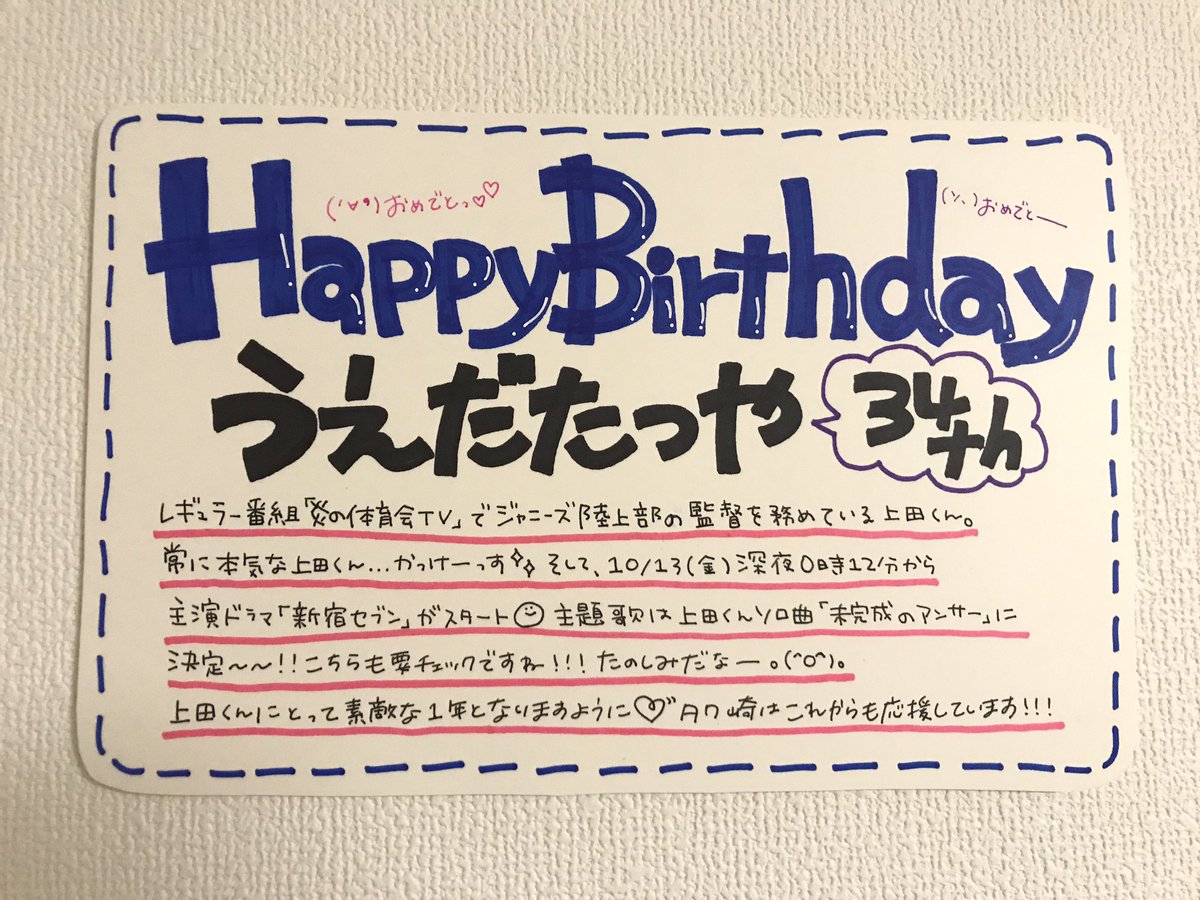 #祝上田竜也生誕祭34周年 pic.twitter.com/Nb7ZFWcxYm2017年10月4日 00:03