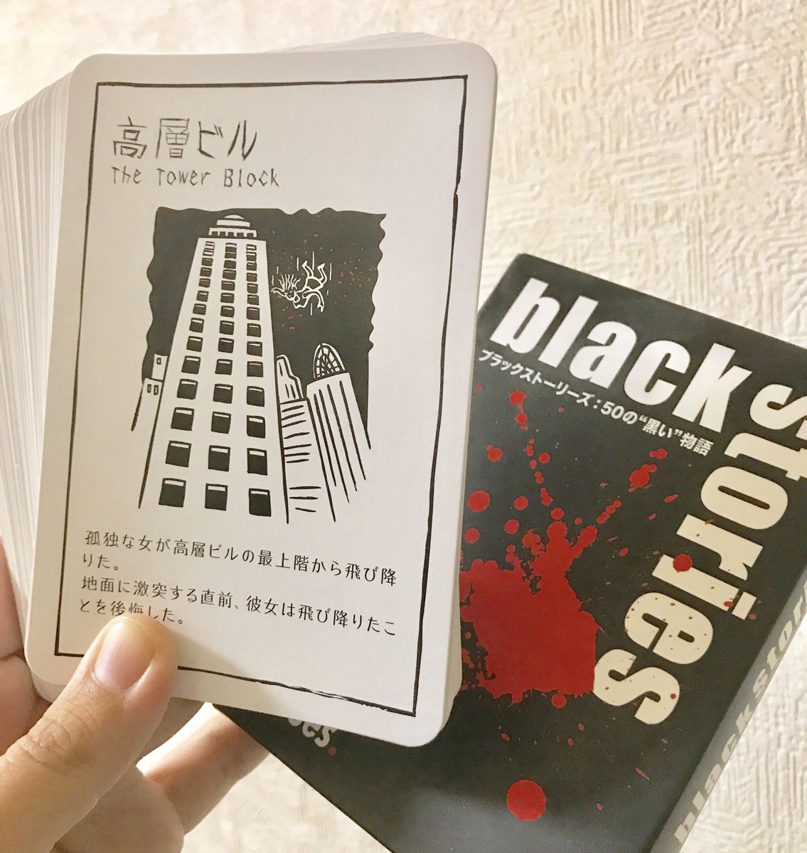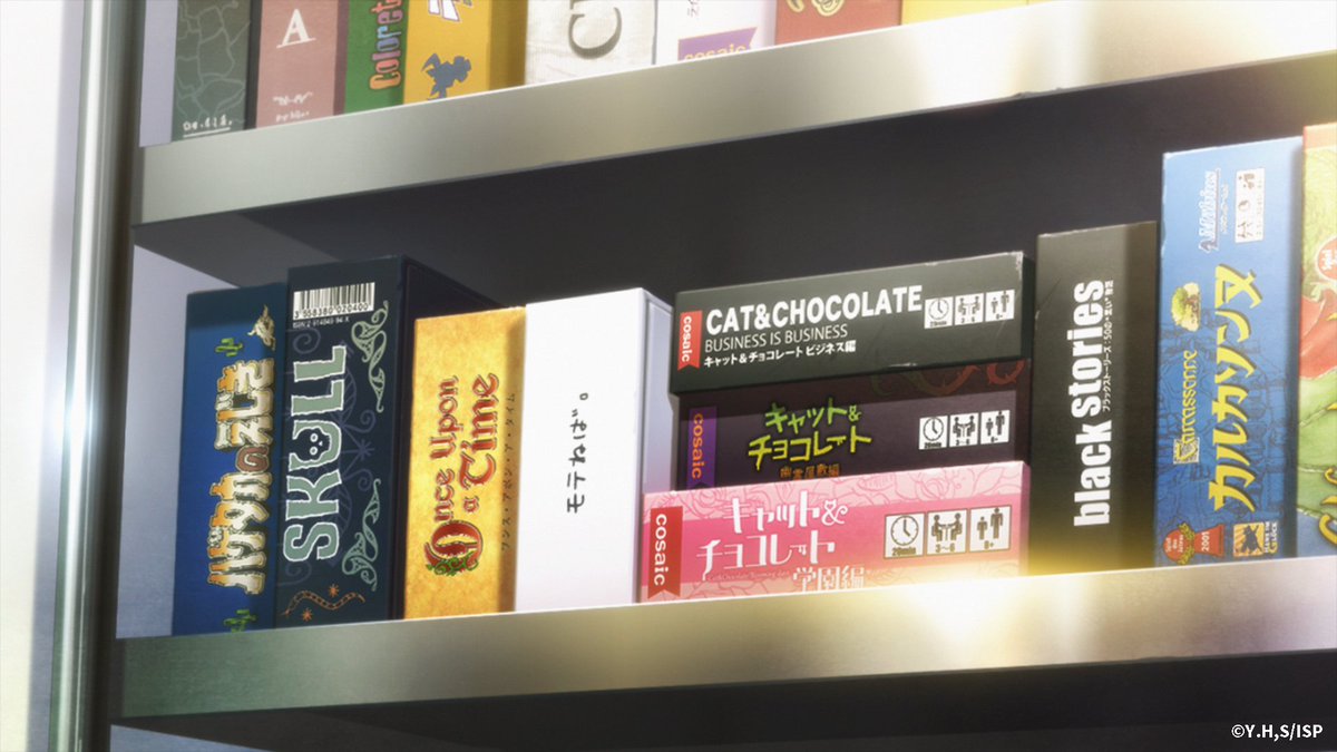 ちなみに【1話エンドカード】3/3。公式サイトにも本編登場ゲームのご紹介を都度アップしております、こちら→ sp.imotosae.com/bodoge/ また、伊月の部屋の棚にはblack stories以外にも沢山ボードゲームが…このあたりもぜひご注目ください! #imosae pic.twitter.com/Ln2vUQIpP4