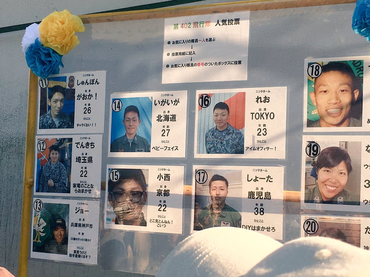 空自のイケメンNo.1を決めるコンテストをしていました。多くの女性が投票に参加しており盛況!私と友人は11番の方がカッコいい!と盛り上がりました~(^^)