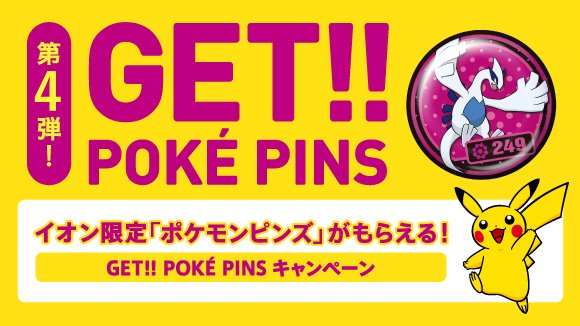\本日から/ イオン限定「GET!! POKE PINS キャンペーン」第4弾がついにスタート! イオンだけでしか手に入らないポケモンピンズをGETしよう! くわしくはこちら aeon-pokemon.com #ポケモン #イオン #ポケモンピンズ pic.twitter.com/DM7InTRYuf