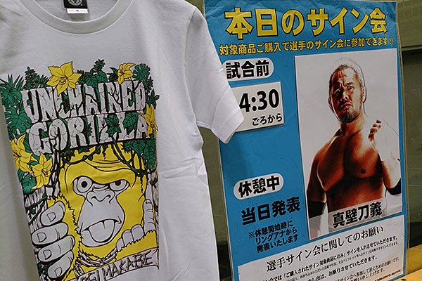『WORLD TAG』高崎大会は場内売店で新日本プロレスのオフィシャルグッズを販売! 試合前のサイン会はソフトバンクのCMに出演中の“暴走キングコング”真壁刀義選手が登場します! この機会をお見逃しなく! #njwtl #njpw pic.twitter.com/jb7XJtQ1wY